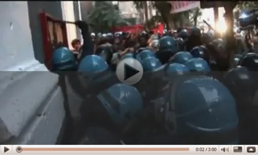Fonti del centro sociale riportano di "centinaia di sostenitori dell'Experia caricati con decine di contusi". Anche l'asino più mansueto, se bastonato con troppa frequenza, si rivolta. Il cittadino italiano si sta abituando a essere manganellato ogni volta che manifesta. Donne, anziani, ragazzi, operai sono manganellati abitualmente dai tutori dell'Ordine. Ma chi gli dà questo diritto? Il diritto di picchiare persone incensurate che protestano? I cittadini si possono fermare, chiedere loro i documenti, anche portare in questura per accertamenti. Ma non pestare a sangue alzando il manganello al cielo come si vede nel fotogramma del video di questo post. I cittadini non sono bestie come forse qualcuno in Parlamento si ostina a pensare.