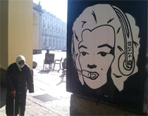 "Ciao Beppe, mi chiamo Gec, sono un artista di Torino, non potrò dirti il mio nome e cognome, essendo l'80% della mia arte particata in strada in maniera del tutto illegale. Ti scrivo perchè negli ultimi giorni ho portato in strada una grafica che ritengo potrebbe essere la nuova icona della nostra generazione: Si intitola "89.24.24-generazione senza miti" si tratta di una rivisitazione di Andy Warhol. Andy Warhol prese una ragazza (Marilyn) e la fece di diventare un icona, un mito degli anni 60, qui viene fatto l'esatto opposto,si prende il mito per eccellenza (Marilyn) e lo si fa tornare ragazza normale,senza trucco, che lavora in un call center come tanti. Ti chiederai perchè ho deciso di scriverti tutto questo, semplicemente perchè sei l'unica persona che mi rappresenta in questo paese e che potrebbe portare questa grafica ad un pubblico più vasto di quello che ogni giorno cammina per le strade di Torino." GEC