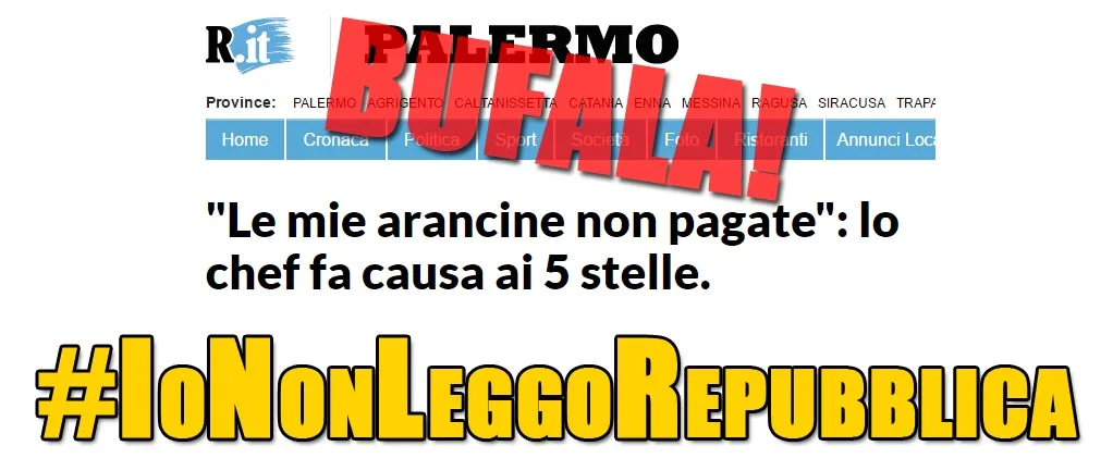Il 2 novembre 2016, Repubblica Palermo titola così: "'Le mie arancine non pagate'. Lo chef del raduno di Palermo fa causa ai 5 stelle". Firma del giornalista? Non pervenuta. In sostanza, nell'articolo si insinua che il MoVimento 5 Stelle non ha tenuto un comportamento corretto nei confronti di un fornitore di arancine ingaggiato per l'evento di Palermo.