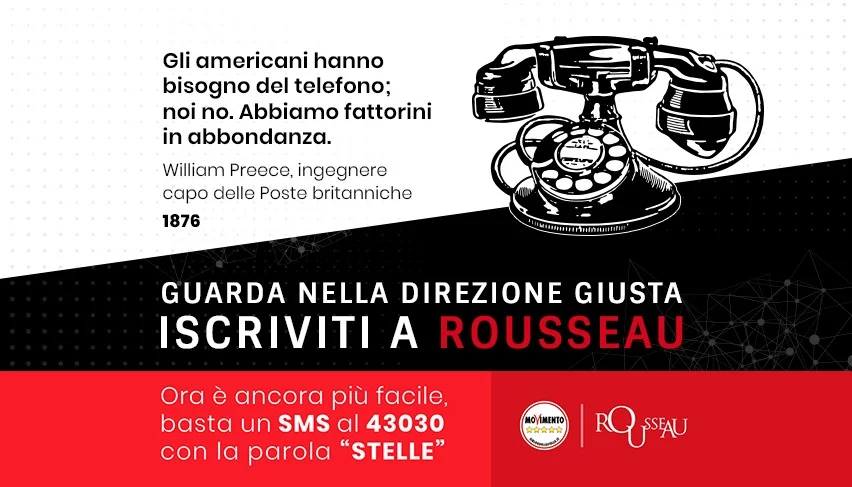 Ora entrare a far parte di Rousseau è ancora più facile: per iscriversi basta inviare un SMS al 43030 con la parola “STELLE”.