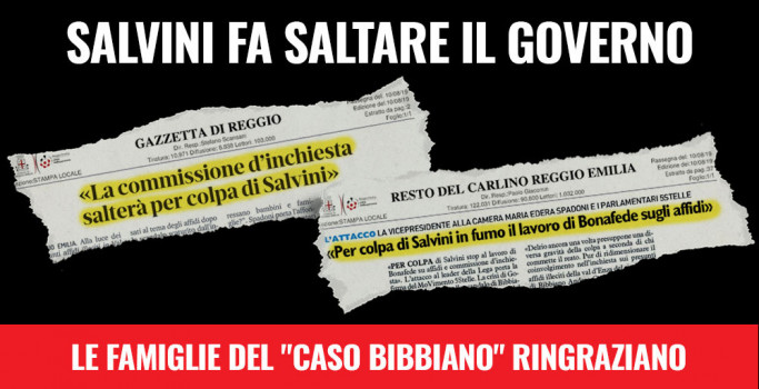 I cittadini italiani, in particolare quelli della Val d’Enza e tutti coloro che si erano interessati al tema degli affidi dopo lo scandalo scaturito dall’inchiesta “Angeli e Demoni” , devono sapere che con la caduta del Governo Conte per colpa di Salvini si interromperà anche il lavoro iniziato sul tema dal Ministro della Giustizia Alfonso … Leggi tutto Caso Bibbiano, la Lega fa saltare anche la Commissione d’inchiesta sugli affidi