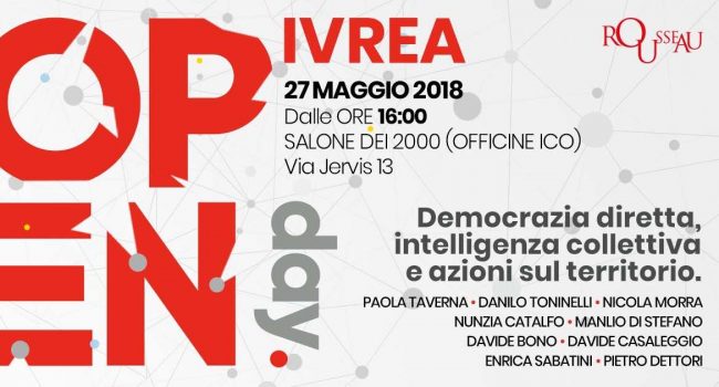 24 Maggio, 2018 Rousseau Open Day Rousseau: domenica 27 appuntamento a Ivrea di MoVimento 5 Stelle 80 Commenti Domenica 27 maggio vi diamo appuntamento a Ivrea, dove riparte l'appuntamento con gli...