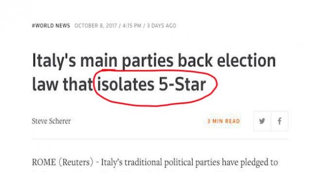 11 Ottobre, 2017 Dalla rete I giornali stranieri danno ragione al MoVimento 5 Stelle sull’emergenza democratica di MoVimento 5 Stelle 24 Commenti di MoVimento 5 Stelle Europa La riforma della legge elettorale italiana fa il giro d...